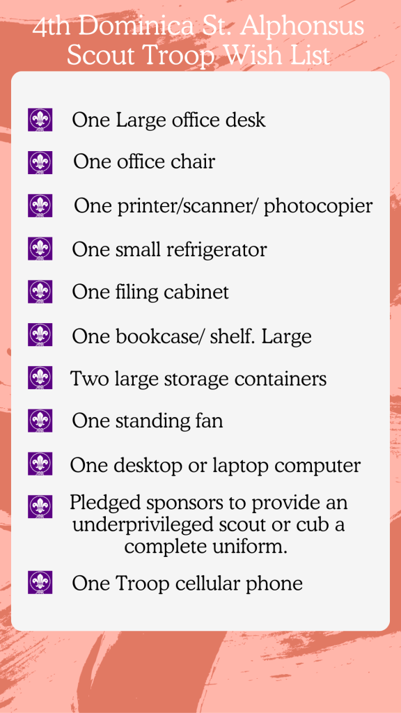 Mr. Charles would like the public both in Dominica, and overseas to know that the 4th Dominica St. Alphonsus Scout Troop is very much alive and are recruiting new members. Boys from age 6 and girls from age 14. Interested persons can contact the troop’s executive via phone +1767 277 0152. Email: infostalphonsus@gmail.com, or via visit during regular Friday afternoon scout meetings from 5pm at the Scout Den, located at the Goodwill Parish Hall. With that said, do enjoy my interview with present Group Scout Leader of the legendary 4th Dominica St. Alphonsus Scout Troop: Mr. Steve Charles.